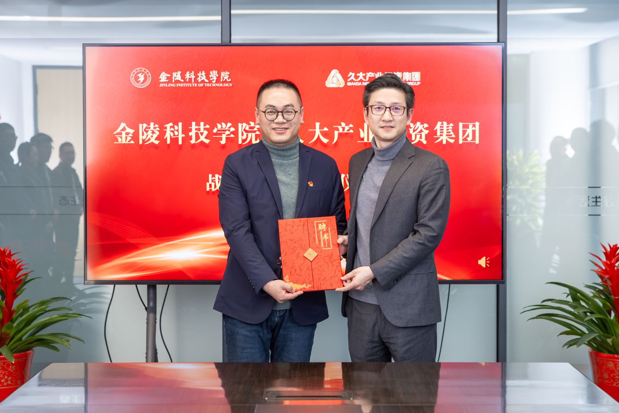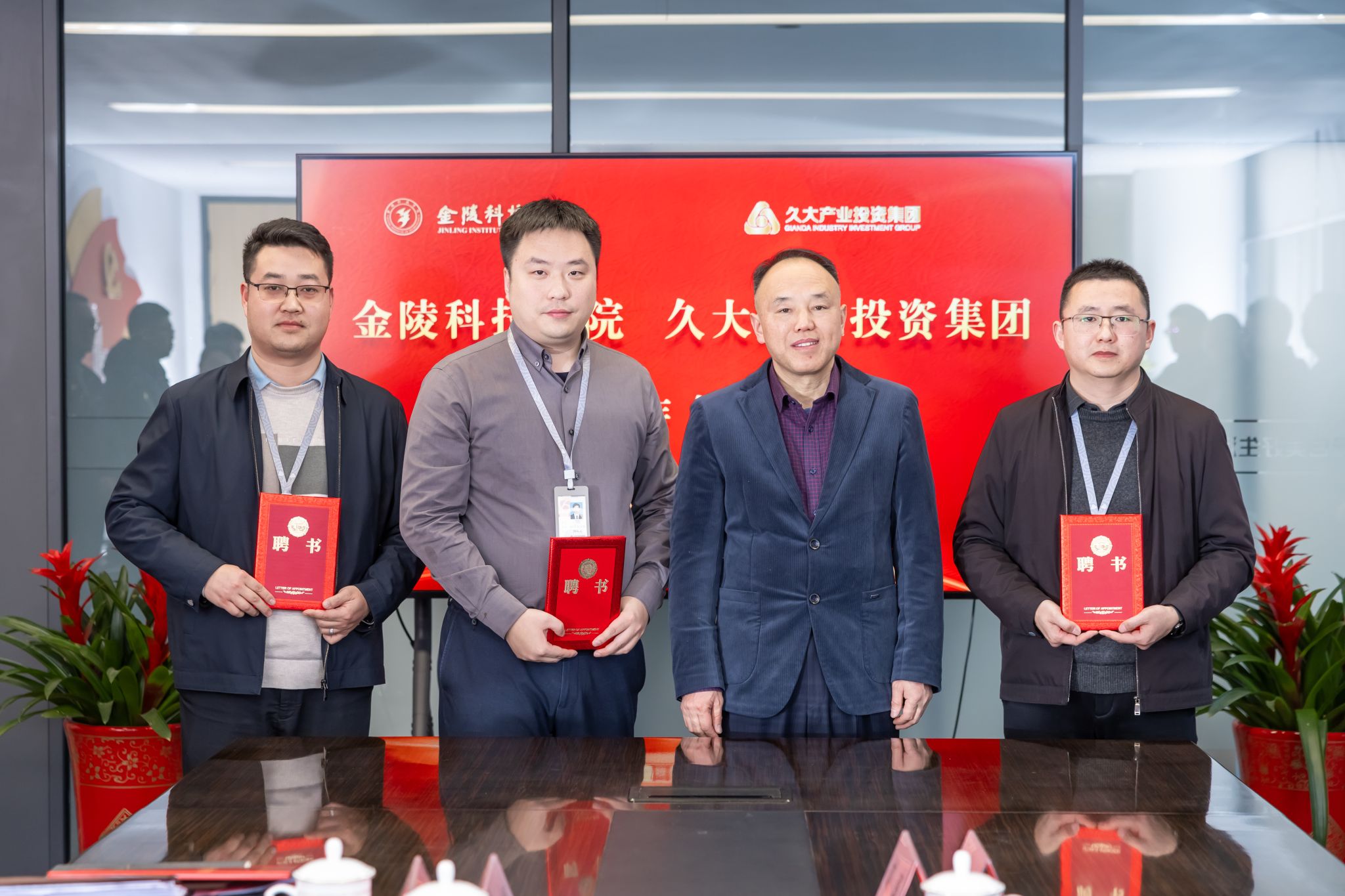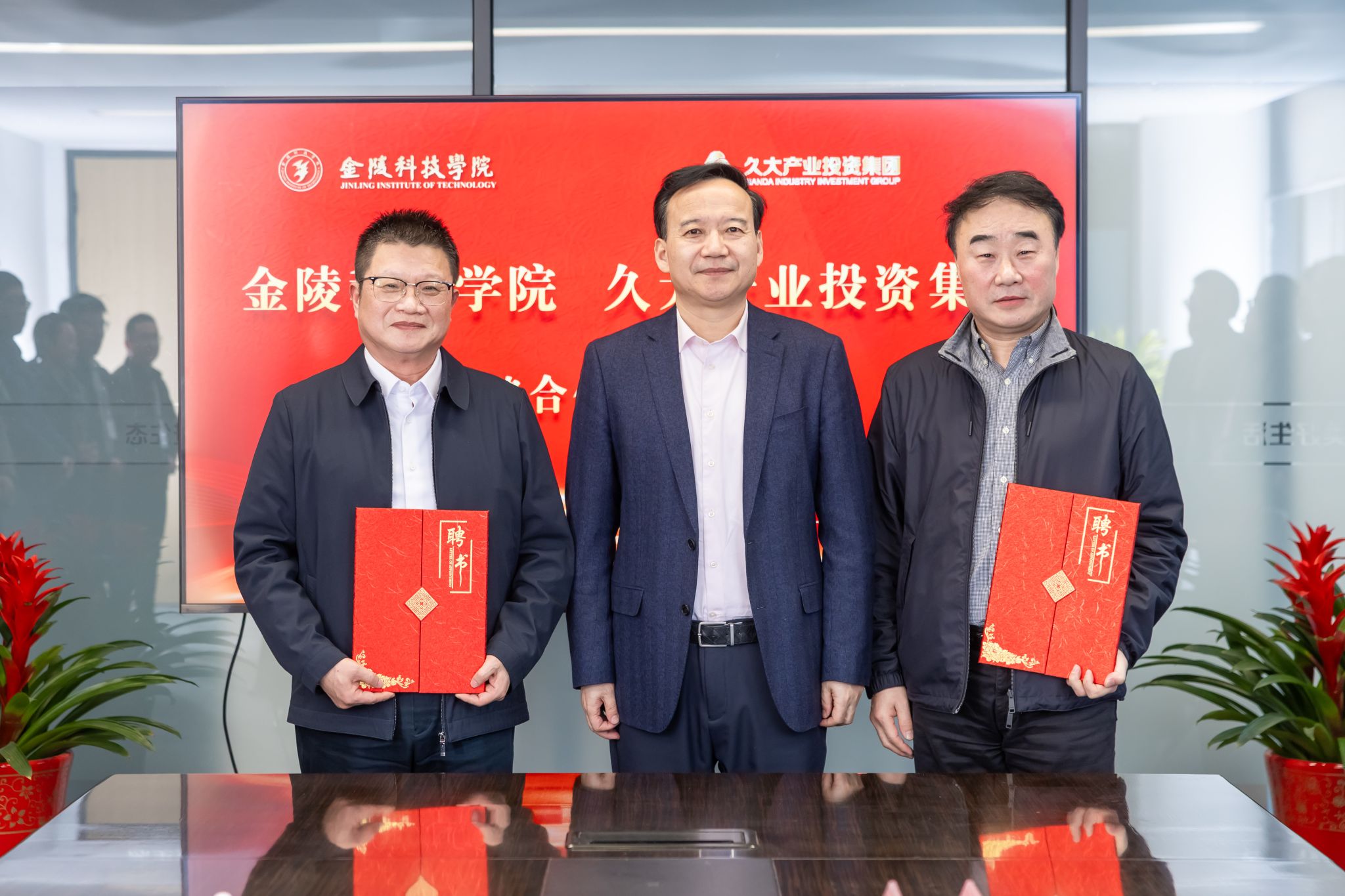 会上,王延光、华晓春代表双方签署了校企合作框架协议。校教育发展基金会理事长庞海燕、久智首席营销官吉海洋共同签订了奖教奖学金捐赠协议。陶绪祥为园林园艺学院和商学院教师颁发科技副总聘书,刘永彪为陶绪祥、华晓春颁发商学院客座教授、长江双碳经济发展研究院高级研究员聘书。商学院院长刘磊、园艺园林学院院长宰学明为久大产业投资集团相关专家颁发金融专硕、农业专硕校外导师聘书。