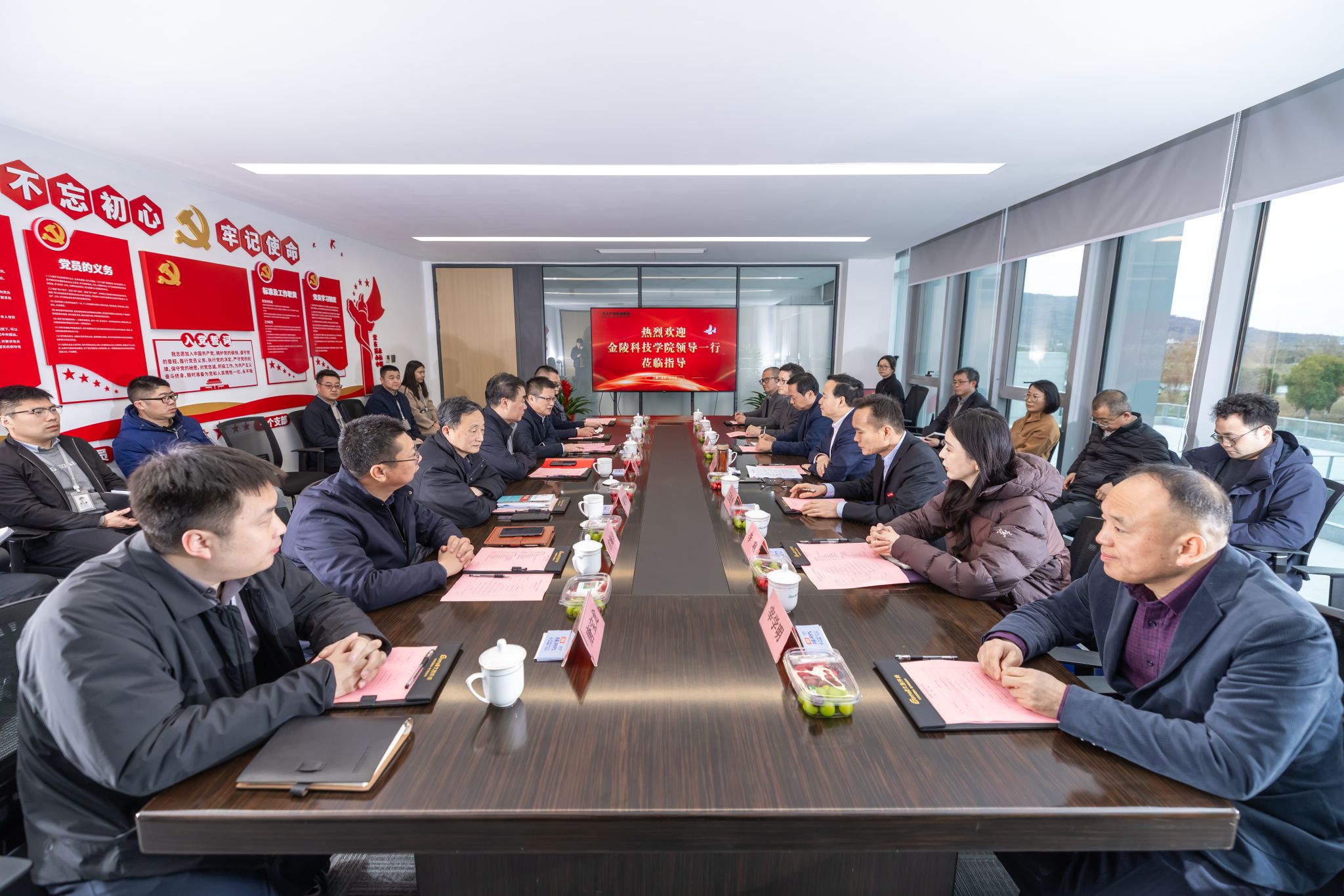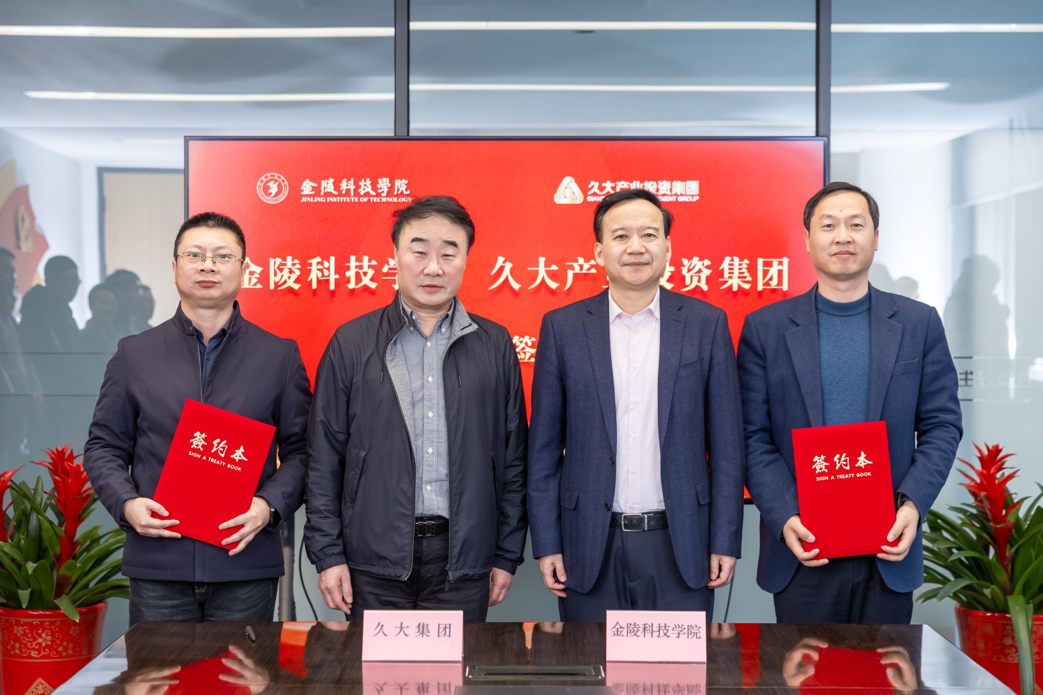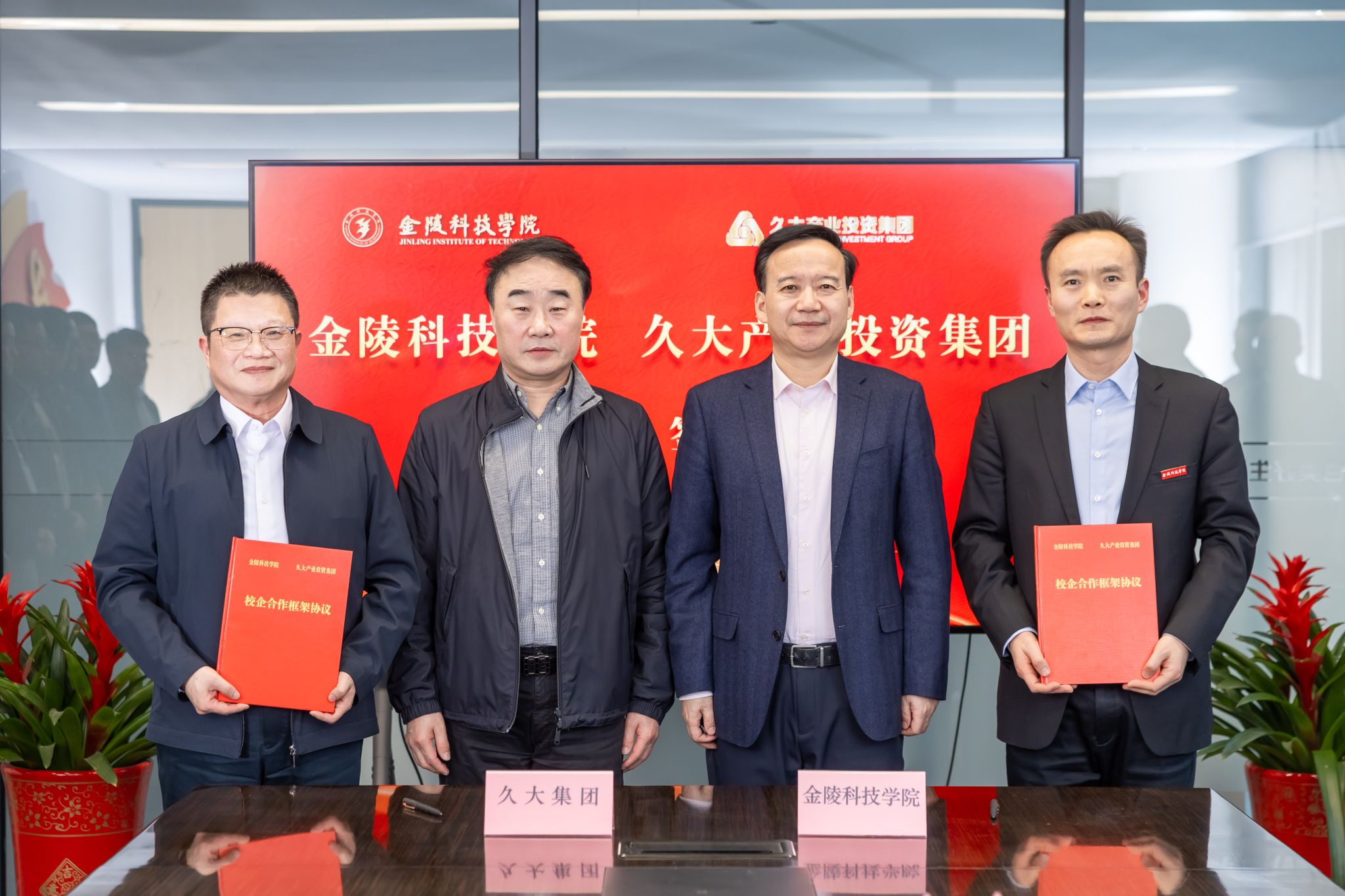 1月9日下午,校长刘永彪带队赴久大产业投资集团访企拓岗并进行校企合作签约仪式。久大产业投资集团董事长陶绪祥、南京市园林工程管理协会会长陆文祥、久大产业投资集团副董事长华晓春、久大建设总裁朱兴国、凯进生态总裁唐宝龙、柯图科技总经理张慧,江苏久智环境科技服务有限公司相关部门负责人,我校校长刘永彪,副校长王延光,校长办公室、合作与发展规划处、科技处、商学院、园艺园林学院等部门、学院负责人及教师代表参加。签约仪式在久大集团数字双碳产业园1号楼举行,会议由华晓春主持。