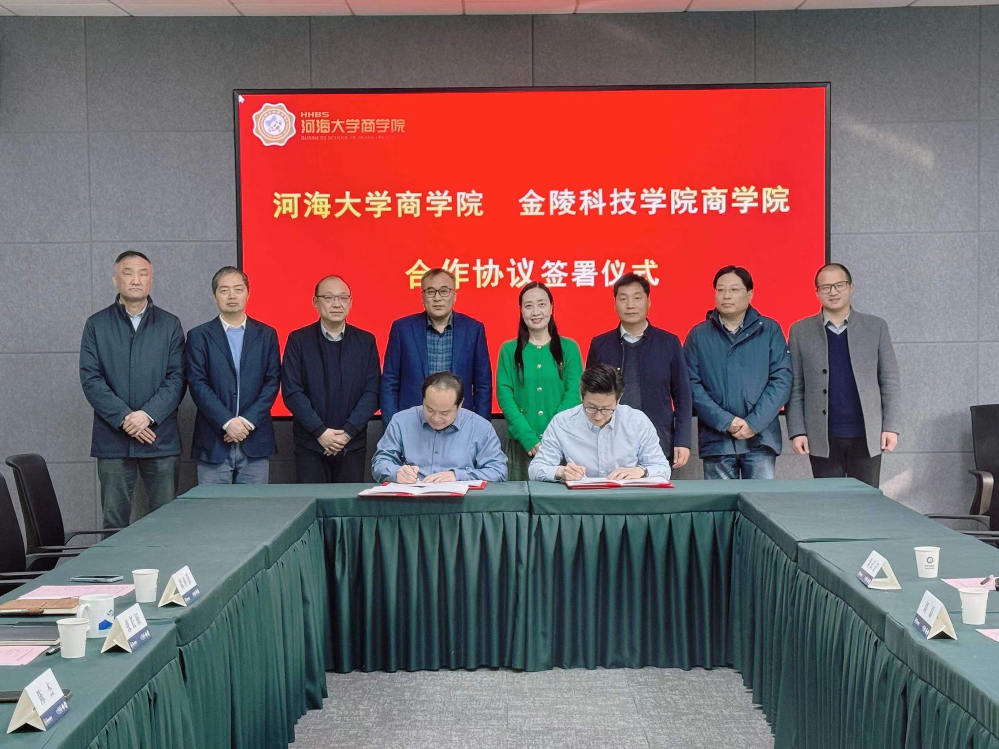 1月21日,我校商学院与河海大学商学院在河海大学博学楼A101会议室举行人才培养合作框架协议签约暨博士生导师组聘任仪式。河海大学商学院党委书记陈杰、副院长(主持工作)张长征、副院长张可、院长助理周申蓓、会计系党支部书记新夫及博士研究生代表;我校副校长顾晓燕,研究生处处长张长青,商学院院长刘磊、副院长黄阳、朱长宁教授参加活动。