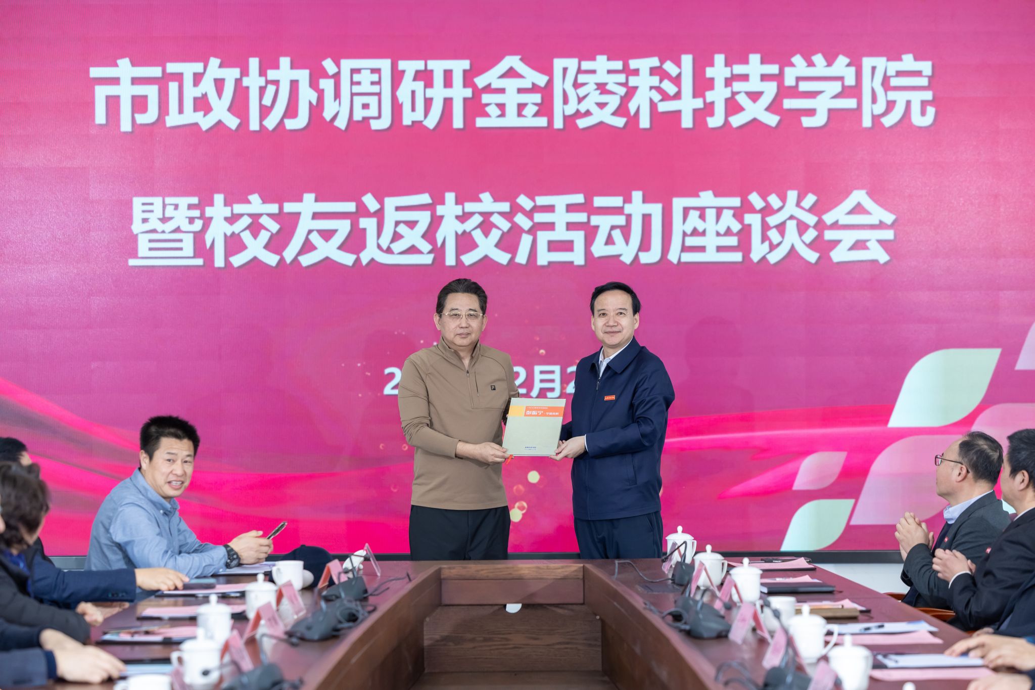 座谈会上,刘志远对市政协吴卫国一行和各位校友的到来表示热烈欢迎并汇报了学校发展情况。他表示,学校在市委市政府的正确领导、市政协的关心指导及各位校友的支持见证下,坚持服务南京区域经济社会发展,积极创新人才培养模式,不断深化产教融合、校企合作,办学层次实现历史性突破,人才培养质量不断提升,科技创新能力不断提高,服务南京的贡献度持续增强。他强调,此次市政协调研指导和校友返校座谈,既是对学校工作的“全面检阅”,更是对学校发展的有力推动。学校将以此次调研为契机进一步深化校地合作,协同发展,为中国式现代化南京新实践贡献金科智慧。