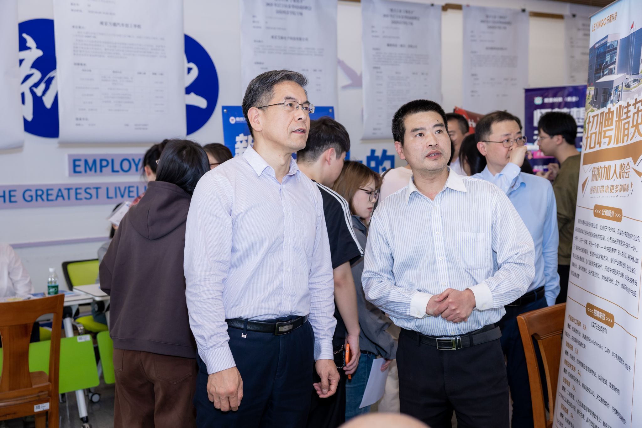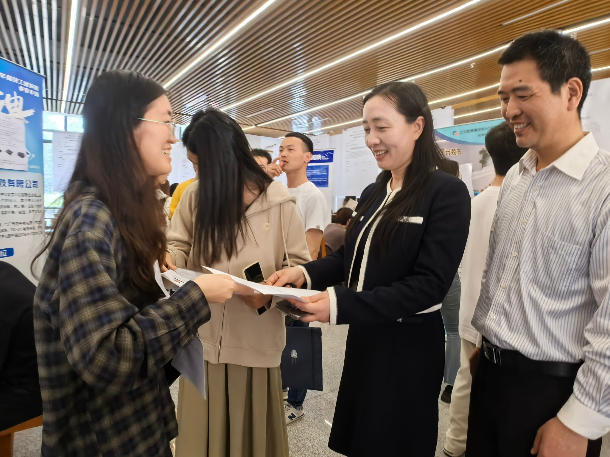 为进一步做好2025届毕业生就业工作,我校努力开拓更多就业岗位,开展2025届毕业生“春季促就业攻坚行动”系列招聘会活动。3月26日下午,学校在江宁校区大学生活动中心一楼招聘大厅举办“携手江来 宁聚英才”2025年江宁区春季校园招聘会明发体育(电子)股份有限公司专场。校党委书记刘志远、副校长顾晓燕莅临现场指导工作,党委办公室、招生与就业指导处相关部门负责人陪同。