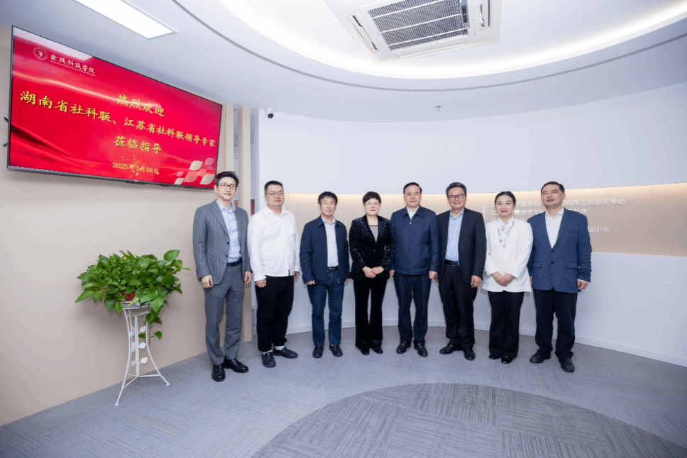 3月26日上午,湖南省社科联党组成员、副主席、秘书长(兼)贺建湘,江苏省社科联党组成员、副主席刘西忠等一行莅临我校,调研新型智库平台建设工作。我校新型智库负责人刘永彪教授,科技处、商学院相关负责人,江苏省数字技术与产业经济应用工程研究中心、江苏数字化转型发展研究基地、长江双碳经济发展研究院等智库教师代表参加会议。