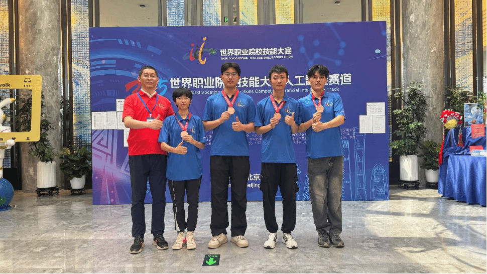9月9日,世界职业院校技能大赛总决赛争夺赛人工智能赛道在北京圆满落幕,赛事吸引了来自全国的366支队伍以及俄罗斯、哈萨克斯坦等多个国家队伍参加。智能科学与控制工程学院吴有龙、徐楠两位教师指导的李俊辉、刘峻诚、严宇航、温嘉莹等学生的项目《多模态感知与边缘计算的智能清洁无人船系统》荣获大赛本科组铜奖。