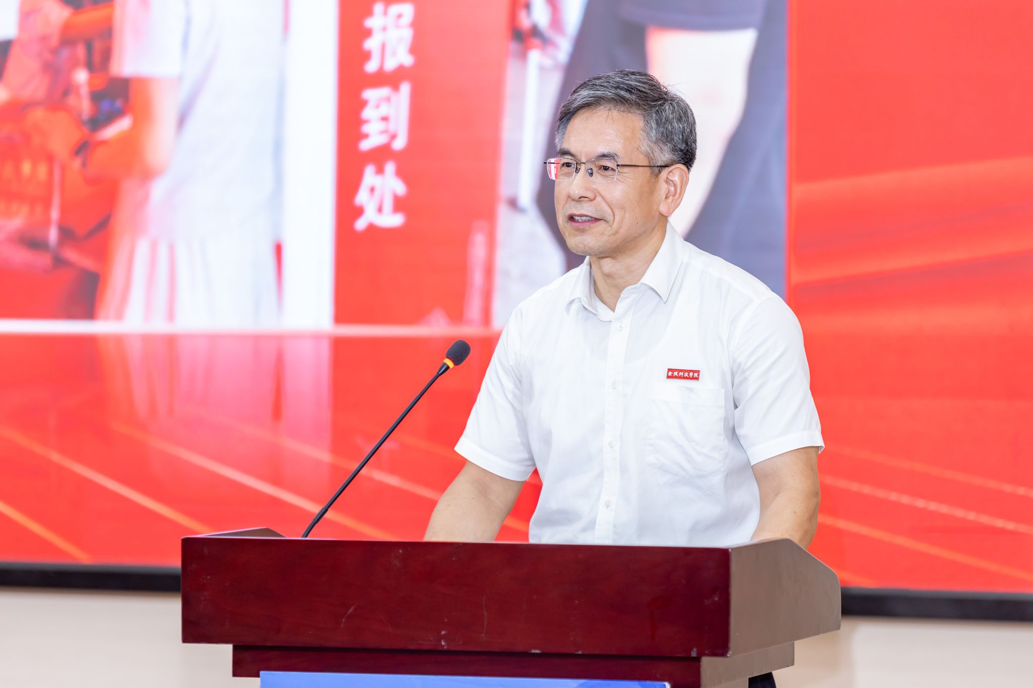 刘志远强调,研究生阶段是人生的拔节孕穗期,是从知识的接收者向知识的创造者飞跃的关键期。他对新生提出了四点期望:一是砥砺家国情怀,校准青春航向。要立“鸿鹄之志”,筑牢信仰根基;要践“报国之行”,书写奋进篇章;要圆“复兴之梦”,奉献青春韶华。二是传承金科精神,铸牢信念之魂。要传承金科人“服务地方、艰苦奋斗、敢为人先”的精神内核,深度融入南京地域发展,积极服务国家战略。 三是锤炼过硬本领,勇攀科研高峰。要做“破壁者”,勇闯学术前沿;要做“深耕者”,掌握核心能力;要做“协作者”,凝聚集体智慧;要做“实践者”,推动知行合一;要守“为学之道”,恪守学术良知;要砺“坚韧之心”,拥抱奋斗精神;要强“卓越之能”,锤炼过硬本领。四是涵养健全人格,奠基幸福人生。要铸“强健之体”,守护奋斗本钱;要育“豁达之心”,疏解情绪压力;要修“高尚之德”,锤炼人格魅力;要建“和谐之谊”,营造温暖氛围。