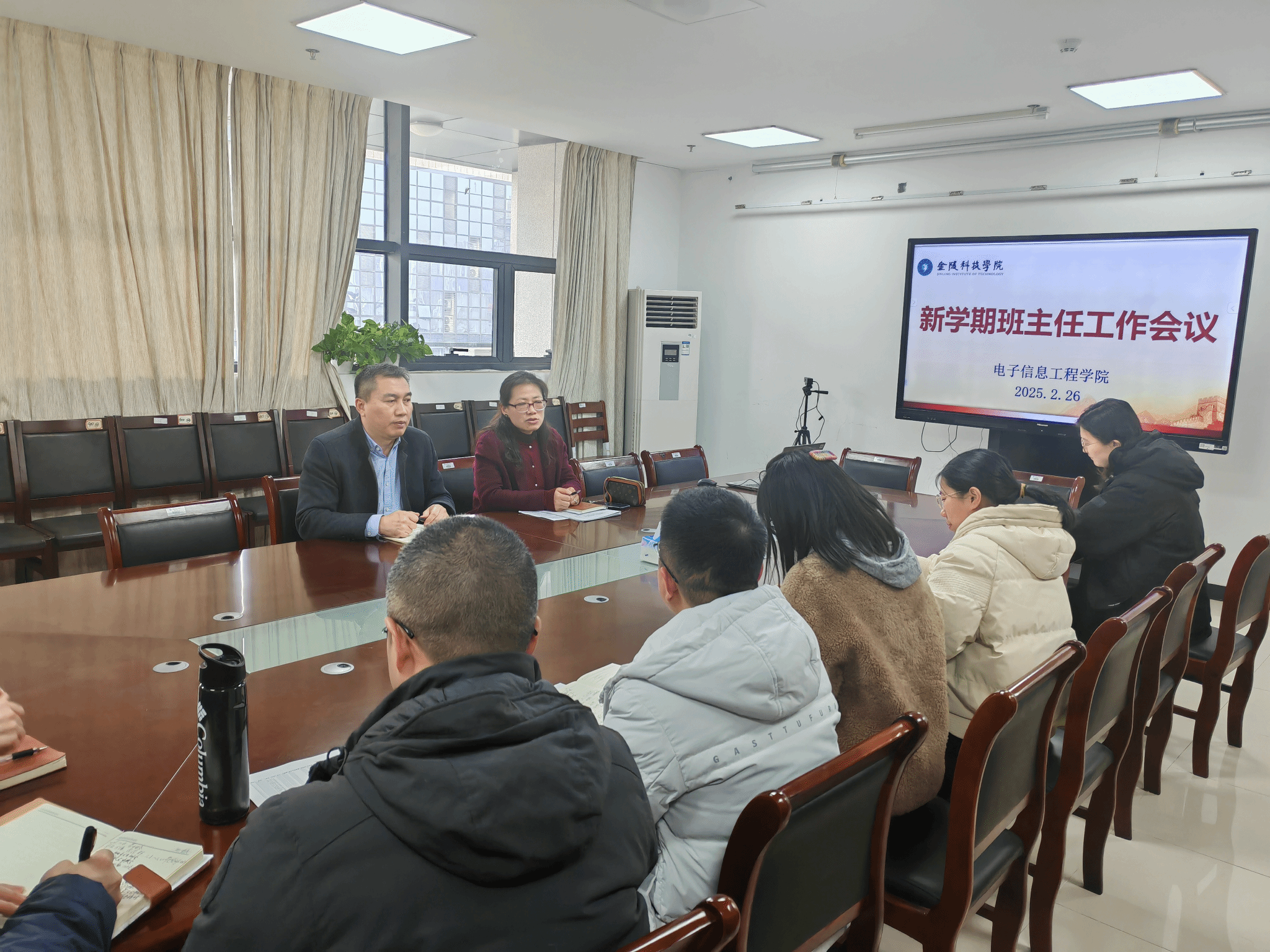 2025年2月26日电子信息工程学院在科技楼4号楼410会议室召开2025年新学期班主任工作例会。学院党委书记徐志国、副书记陈智慧出席会议并讲话,全体辅导员、班主任参加会议。