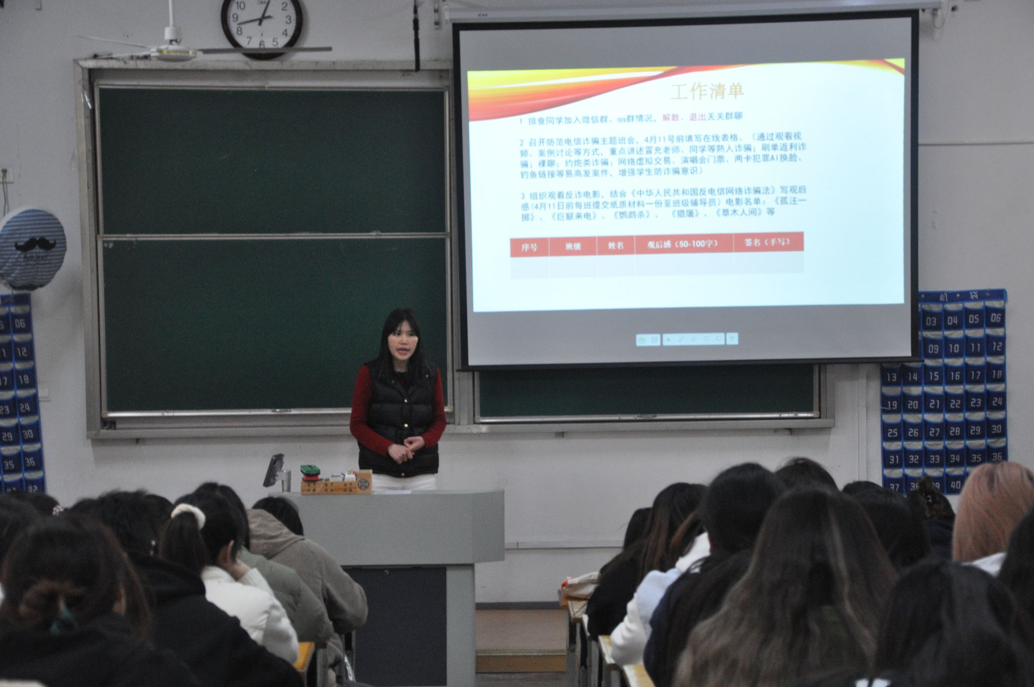 会上,张琳老师传达了学校对于防范电信网络诈骗工作的总体要求,通过真实案例剖析了诈骗分子的作案手法和欺骗手段,揭示了电信网络诈骗的严重危害性以及加强防范工作的紧迫性。她从十个方面向现场学生骨干提出了具体要求,通过线上线下相结合的方式,营造“全员反诈”的校园氛围。学生干部要有大局观,把防范电信网络诈骗工作当作日常必修课和首要任务,时刻紧绷安全之弦;增强忧患意识,主动学习和传播防骗知识,提高自己和身边人的安全意识,形成“人人防骗、人人反骗”的良好氛围;创新工作方法,用同学们喜闻乐见的形式开展反诈宣传,提高同学们警惕性和防范意识;排查同学们信息泄露风险,及时退出不必要的QQ群和微信群,减少被骗风险;确立信息反馈意识,如发现有人可能遭受诈骗或面临风险,应及时报告给班主任或辅导员,共同维护校园的安全稳定。