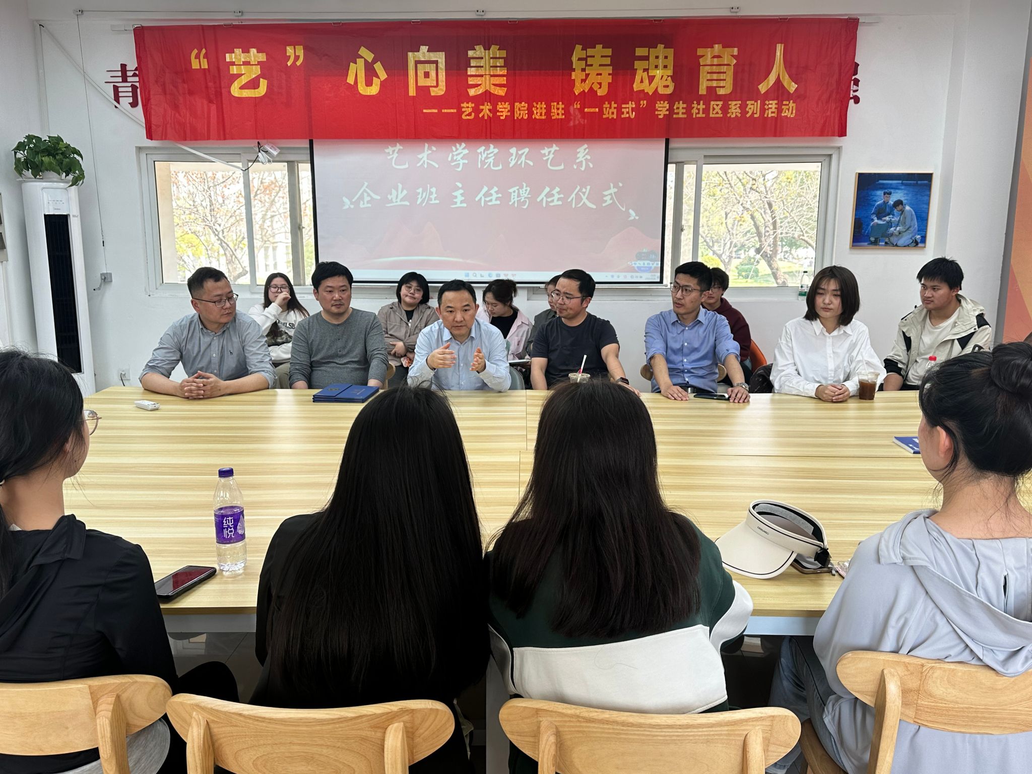为深化产教融合,创新人才培养机制,艺术学院于南区08一站式社区举行环艺系企业班主任聘任仪式。学院党委副书记鲍锐,学工办主任丛扬子,环艺系主任徐晶、副主任赵子君,南京薄幕软件科技有限公司总监任远东(在宁校友),意趣数字科技有限公司创始人周炎、高吟及环艺系环境设计、艺术与科技学生代表参与了此次活动。