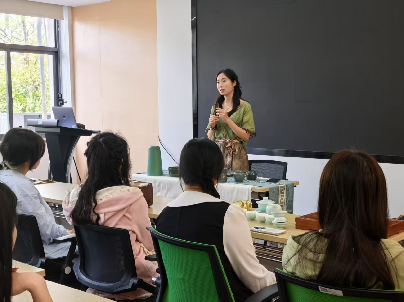活动初始,张胜男老师向大家介绍了茶艺队的团队架构以及未来规划,让新成员们对茶艺队有了更全面的认识。随后,茶社负责人为大家普及六大茶类专业知识,以生动形象的讲解和精湛的茶艺展示,为大家揭开茶文化的神秘面纱。从茶叶的分类、茶具的使用,到泡茶的技巧与礼仪,茶社社长徐郑骅耐心传授,专业的讲解让同学们沉浸在茶文化的独特魅力之中。
