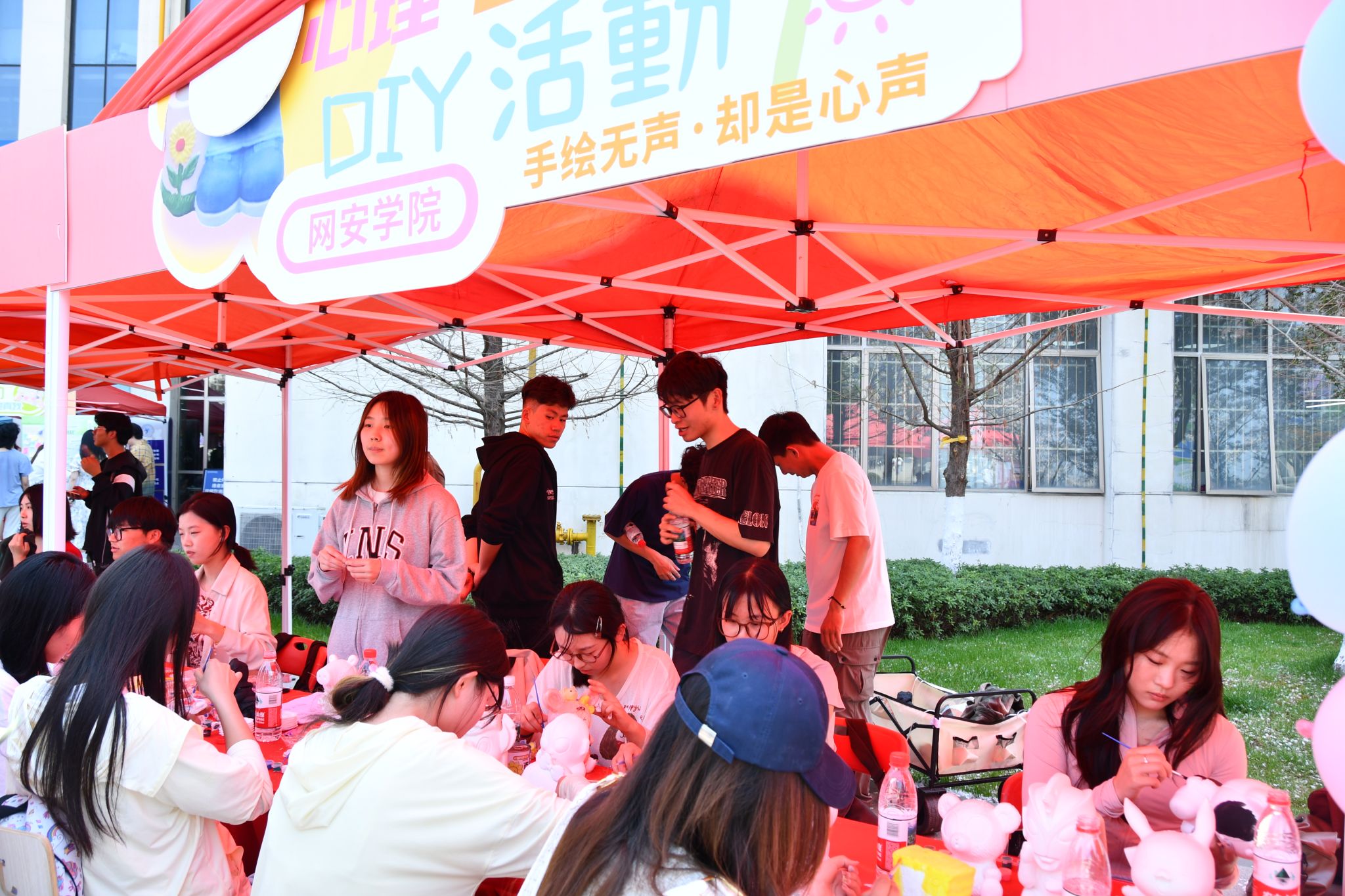 在心理嘉年华中,由网络安全学院承办的石膏彩绘活动别具一格,从11点至13点,活动区域始终人气高涨。该活动将艺术创作与心理调节相结合,鼓励参与者在自由创作的过程中释放压力、表达自我。活动现场提供了各种石膏模型和颜料,参与者们充分发挥想象力,精心绘制出独一无二的作品。不少参与者表示,专注于彩绘的过程让他们忘却了日常的烦恼,感受到内心的平静与放松。