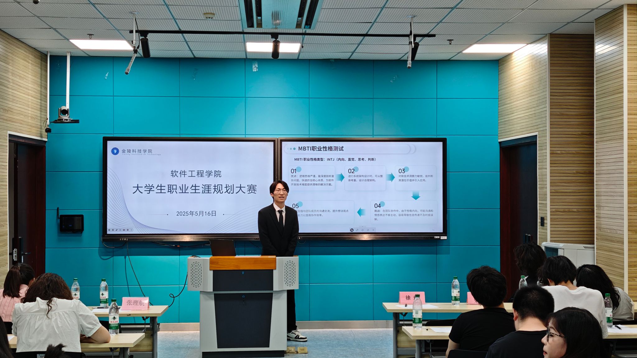 5月16日下午,软件工程学院在科技楼2-226室成功举办“职业生涯规划大赛”。本次大赛旨在帮助学生明确职业目标,提升就业竞争力,来自学院各年级的11名参赛选手同台竞技,分享职业规划与成长路径。软件工程学院党委副书记徐斌、全体辅导员、团总支学联学生干部等嘉宾出席活动并担任评委,现场气氛热烈,吸引了近百名师生观摩学习。