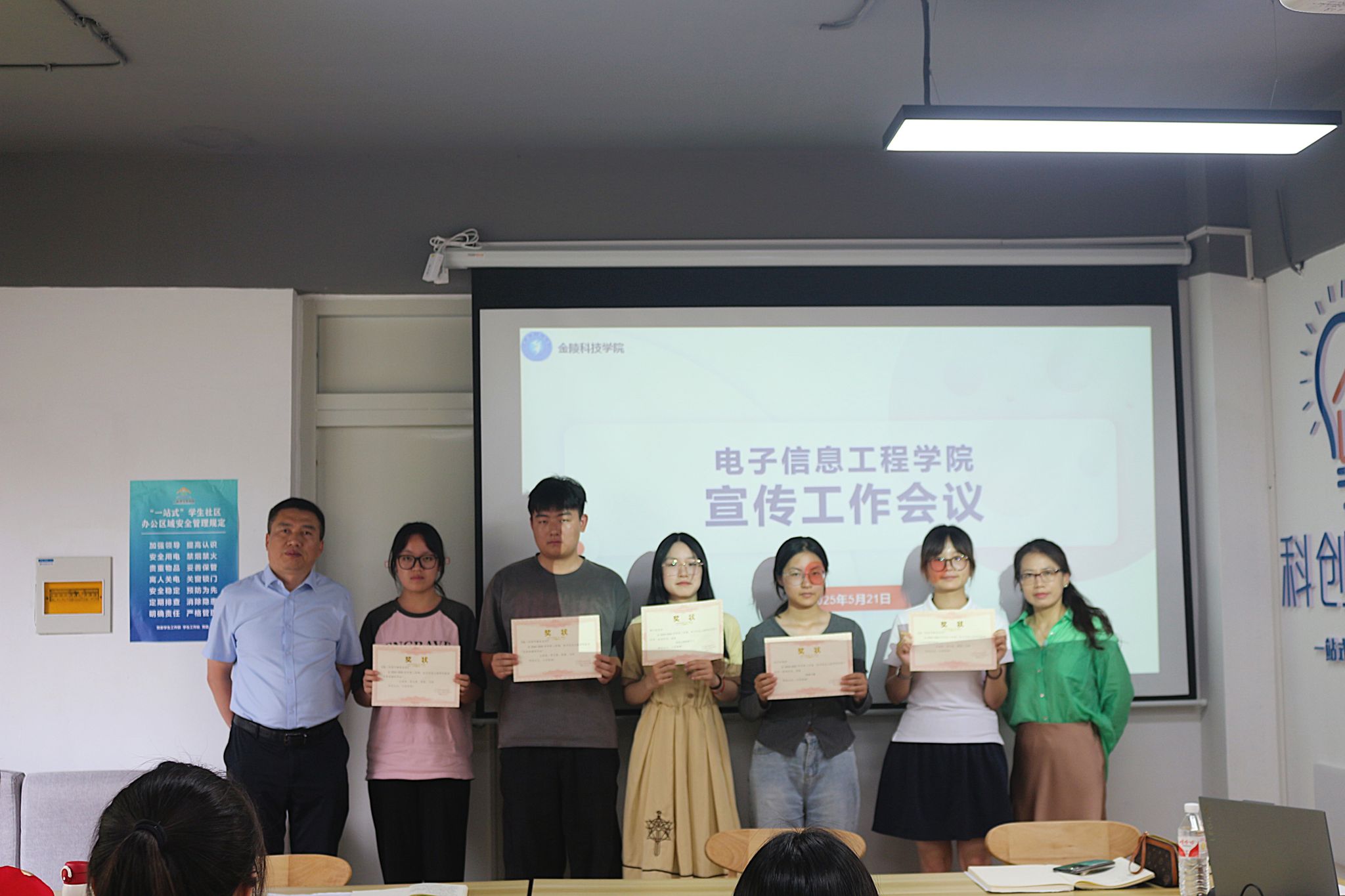 活动中,宣传部代表陈晨宣读了学院宣传工作改进方案;宣传部代表刘子轩、推文组代表何思源、宣传委员代表张萍芝等分享了工作经验;徐志国、陈智慧为在宣传工作中表现突出的同学颁发荣誉证书,以表彰他们的辛勤付出与优异成绩,活动圆满结束。与会人员纷纷表示,将严格落实会议要求,并以此次会议为新起点,秉持创新精神,以饱满的工作热情与专业的工作态度投入工作,推动电子信息工程学院宣传工作再创新佳绩,展现学院蓬勃向上的崭新风貌。