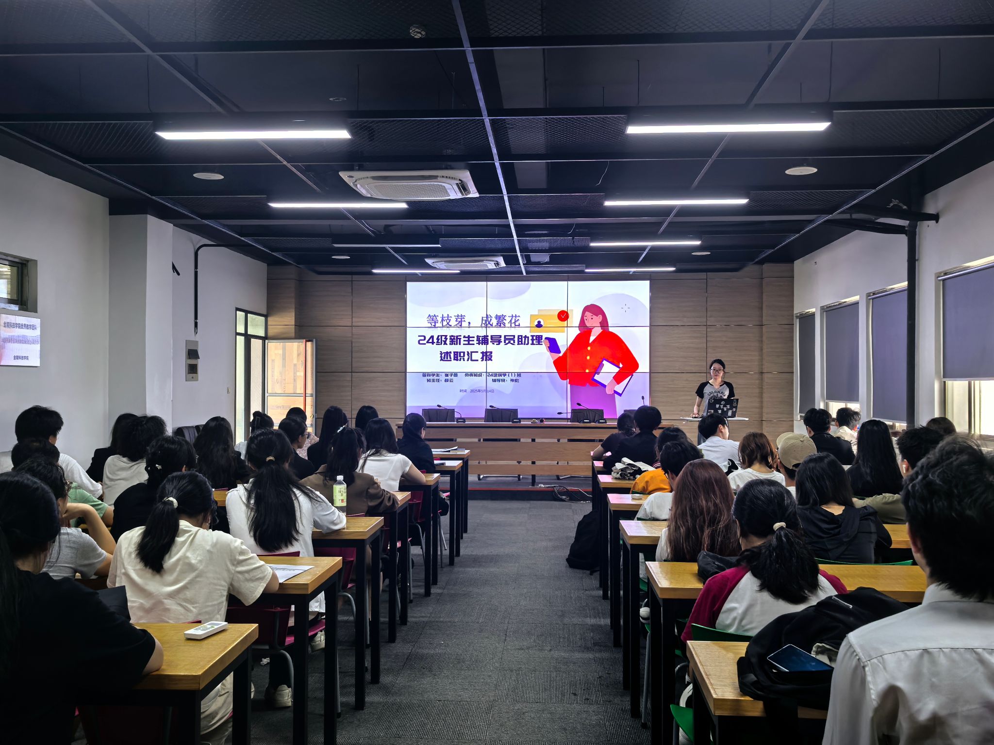 会上,12名新生辅导员助理依次登台,通过PPT、视频等形式,围绕思想引领、学业帮扶、生活关怀、班级建设等核心工作展开述职。建筑学专业辅导员助理崔子萱分享了组织“专业认知沙龙”、建立“一对一学业帮扶小组”的经验;城乡规划专业助理何湘莎通过案例分析,讲述了帮助新生化解宿舍矛盾、适应大学节奏的暖心故事。助理们用详实的数据、生动的照片展现了入学以来深入宿舍谈心谈话、策划主题班会、协助处理突发事件等工作实绩,赢得了现场阵阵掌声。