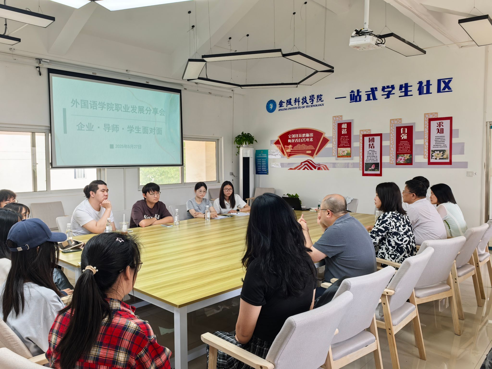 5月27日下午,外国语学院在南区01栋“一站式学生社区”举办企业·导师·学生面对面就业指导活动。学院特邀22英语(1)班企业班主任、资深行业专家周建政为5名2026届毕业生开展个性化职业指导。学院党总支部书记兼22英语(1)班班主任李星、辅导员杨婷全程参与活动,学校其他相关领导莅临现场指导。