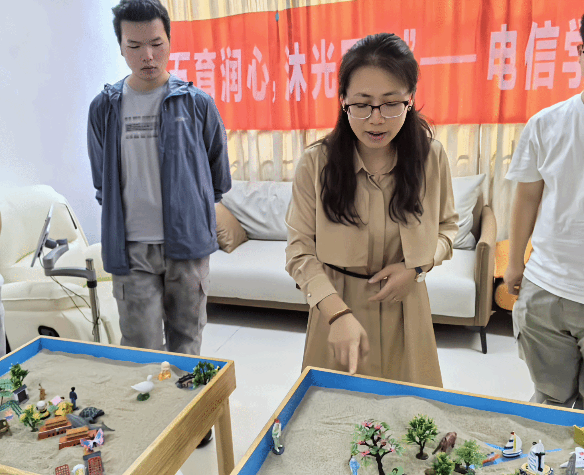 5月28日,电子信息工程学院在科技楼4-314心理辅导室举办了“从自我觉察到生涯规划”的沙盘体验活动,活动由学院党委副书记、EIE心理协会指导教师陈智慧主持开展。
