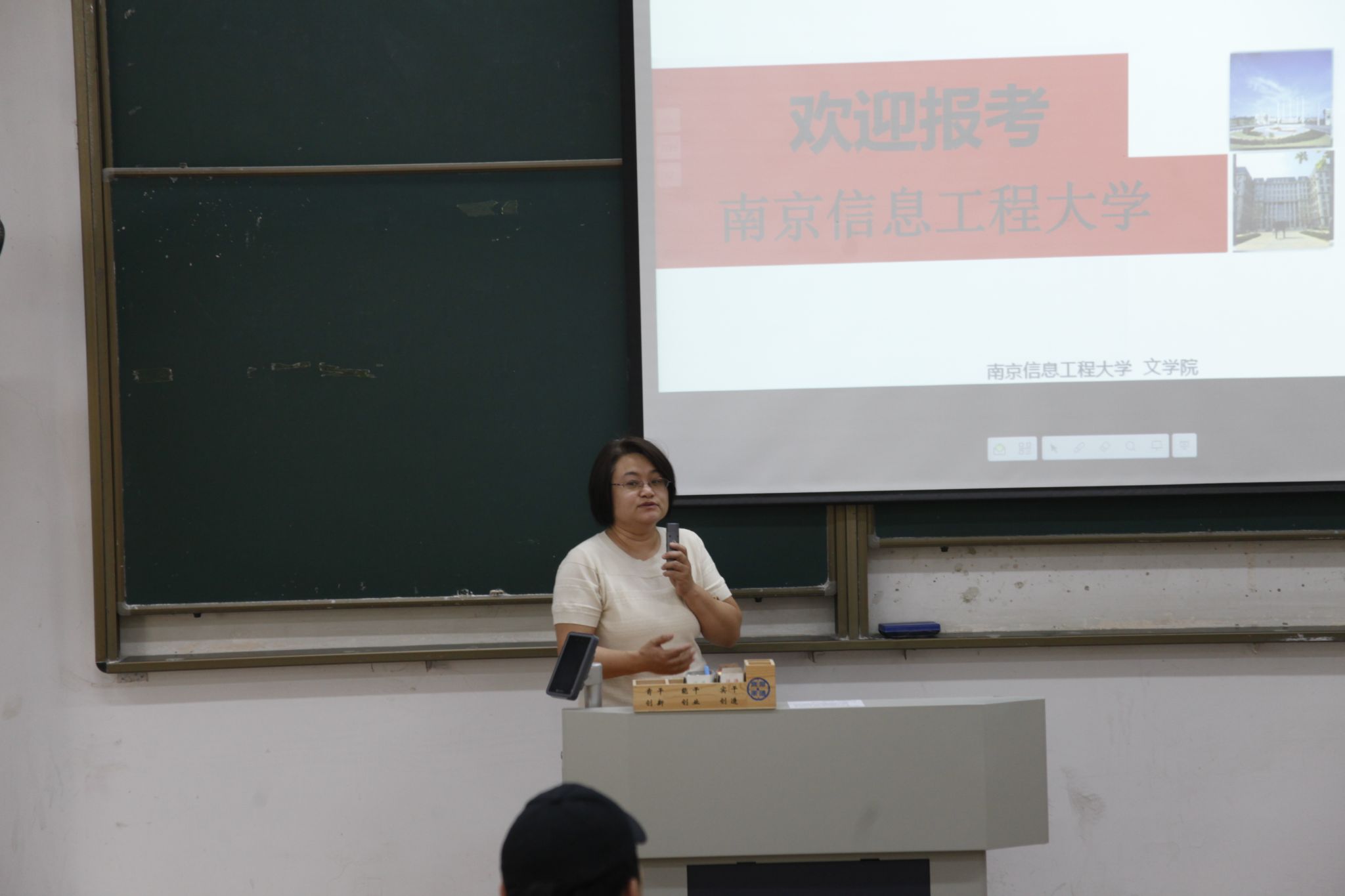 宣讲会伊始,郭书记详细介绍了南京信息工程大学作为双一流高校的综合实力,强调文学院在学科建设、师资队伍、科研成果等方面的显著优势。随后,庞秀慧老师就研究生招生计划、报考流程、奖助政策等关键内容进行了深入解读。结合历年报考与录取数据,分析了各专业的报考趋势与竞争态势,帮助考生合理定位、科学报考。徐开妍老师围绕专业实践基地建设、海外实习项目、跨文化交流活动等内容,展现了专业培养学生国际视野与教学实践能力的独特模式。