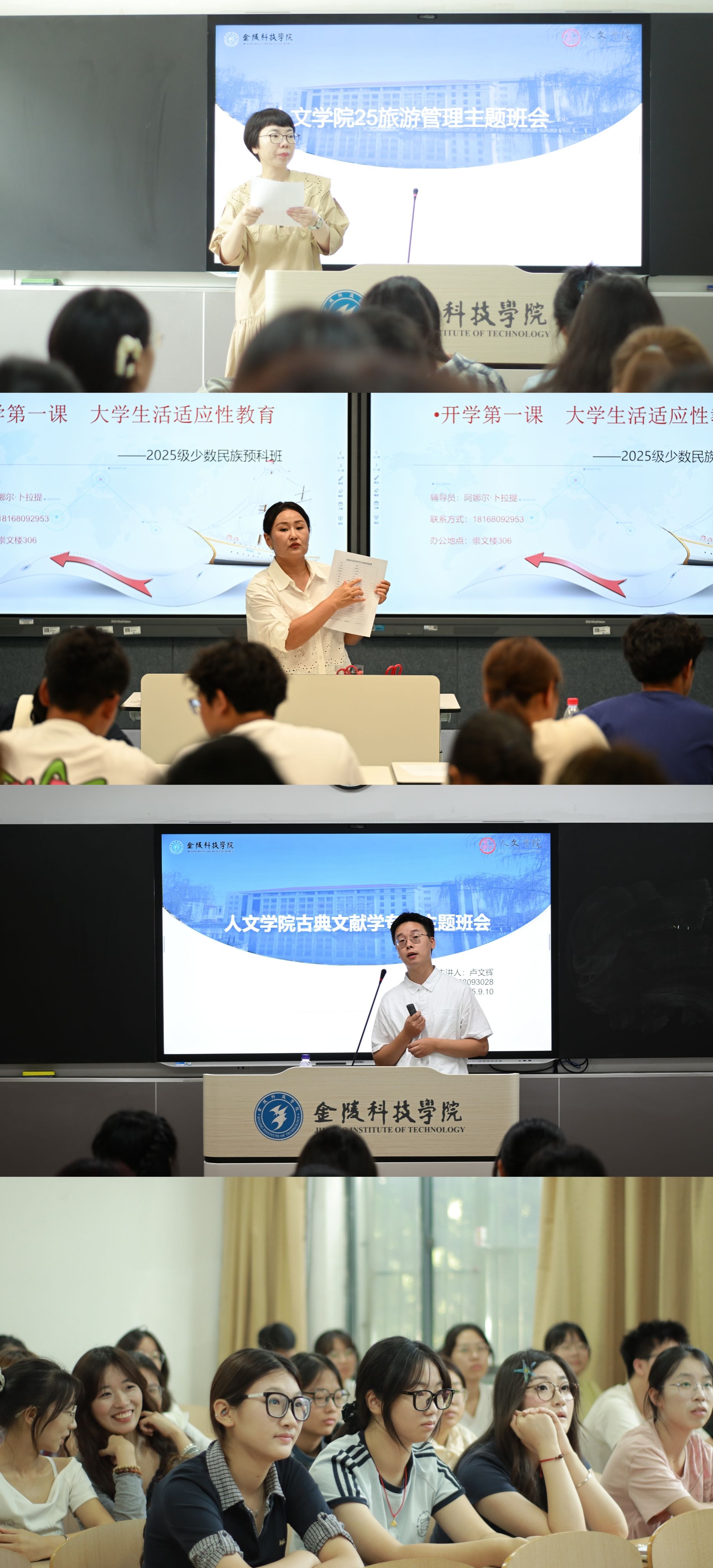 当天下午,全院各班级班主任召开了新生第一次主题班会。从大学四年如何度过,如何进行专业学习,如何与新同学相处等问题谈起,老师们分享交流的自己的经验,并以安全、纪律教育为本,结合真实案例守护好人身与财产安全。