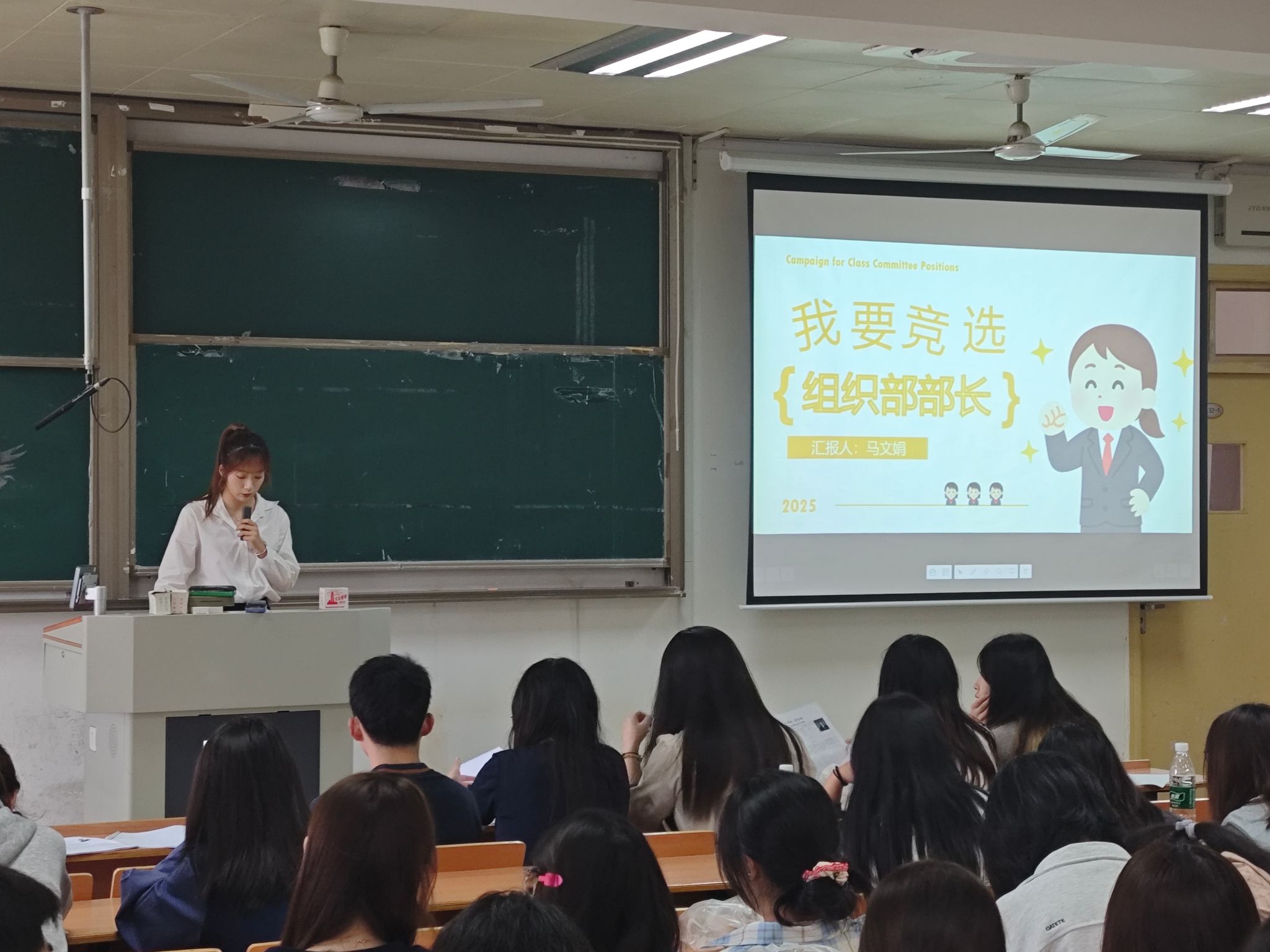会上,第八届学生会主席团成员王帅代表学生会作任期工作总结报告,分享了自己在学生会工作中的成长与感悟。主持人首先宣读了竞选的相关规则,随后各位候选人依次登台亮相。20位选手通过3分钟的演讲进行了自我介绍,对一年来的工作进行回顾并介绍了今后的工作设想;评委们依次对选手进行了现场打分。最后,团总支书记张晓雪进行总结并宣读了竞选结果。