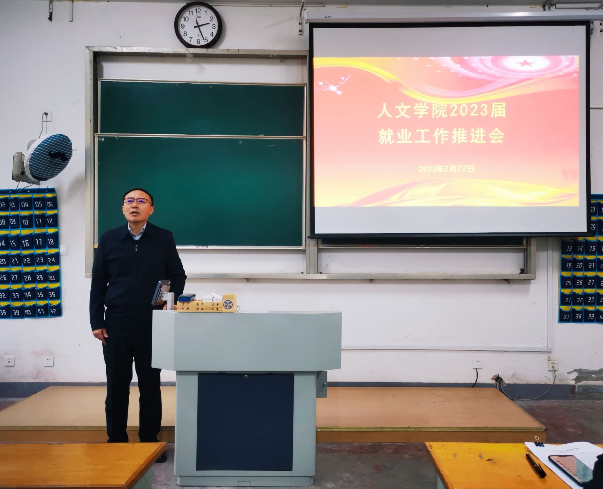 为稳步推进2023届毕业生就业工作,2月22日下午,人文学院于教学楼二阶召开新学期就业工作会,党委书记吴轶军、院长张维亚、副书记韩铖、副院长赵步阳,全体毕业班辅导员班主任参加了此次会议。