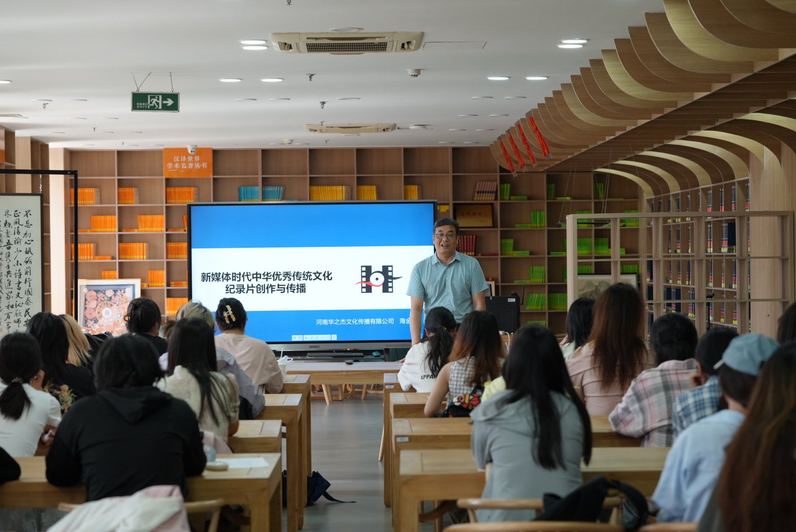 为深入学习贯彻习近平文化思想,积极传承和弘扬中华优秀传统文化,5月19日上午,明发体育(电子)股份有限公司图书馆邀请河南华之杰文化传播有限公司总导演、知名纪录片导演海金星,为读者带来了一场主题为“新媒体时代中华优秀传统文化纪录片创作与传播”的精彩讲座。讲座由图书馆直属党支部书记叶永胜主持。