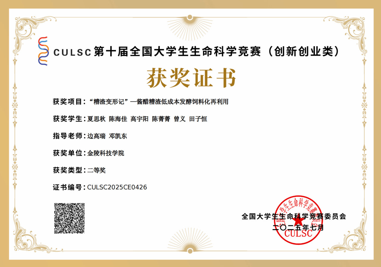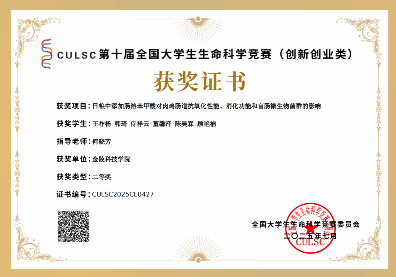 近日,第十届全国大学生生命科学竞赛(创新创业类)全国总决赛圆满落幕。我校动科学院代表队、智控学院代表队在比赛中表现卓越,分别荣膺全国二等奖三项、三等奖一项,创下我校在该项赛事中的历史最佳成绩,展现了我校学子的科研风采与综合实力。