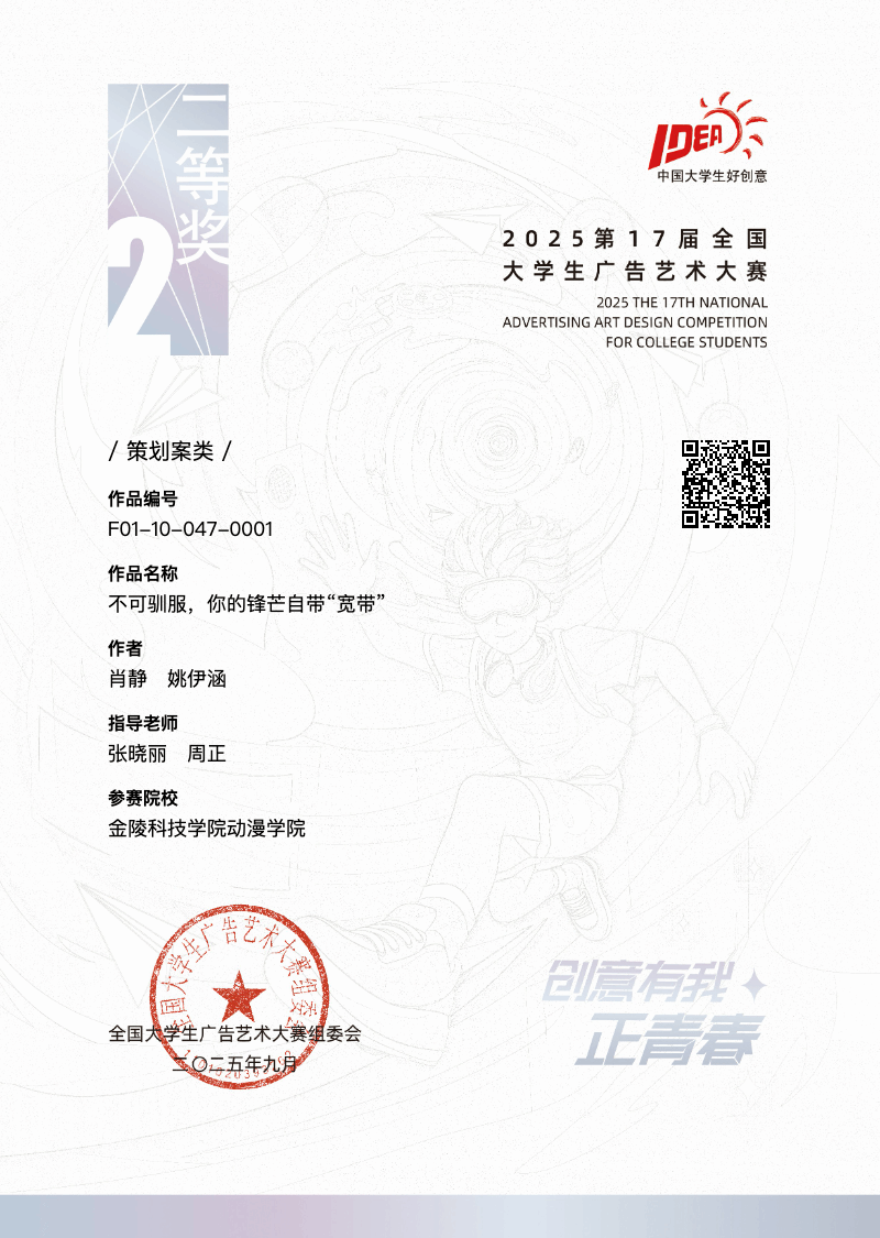国赛二等奖 | 不可驯服,你的锋芒自带“宽带” | 肖静、姚伊涵 | 张晓丽、周正 |