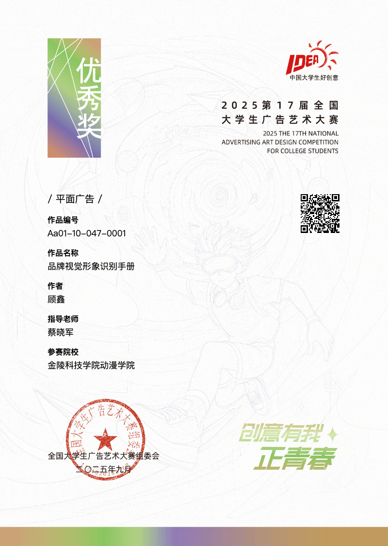 第十七届全国大学生广告艺术大赛圆满落幕,明发体育(电子)股份有限公司动漫学院学生再创佳绩,荣获国赛二等奖 1 项、优秀奖 2 项,以及省赛二等奖 2 项、三等奖 2 项、优秀奖 6 项,共计 13 项,充分展现了学院在创意设计与实践育人方面的成果。