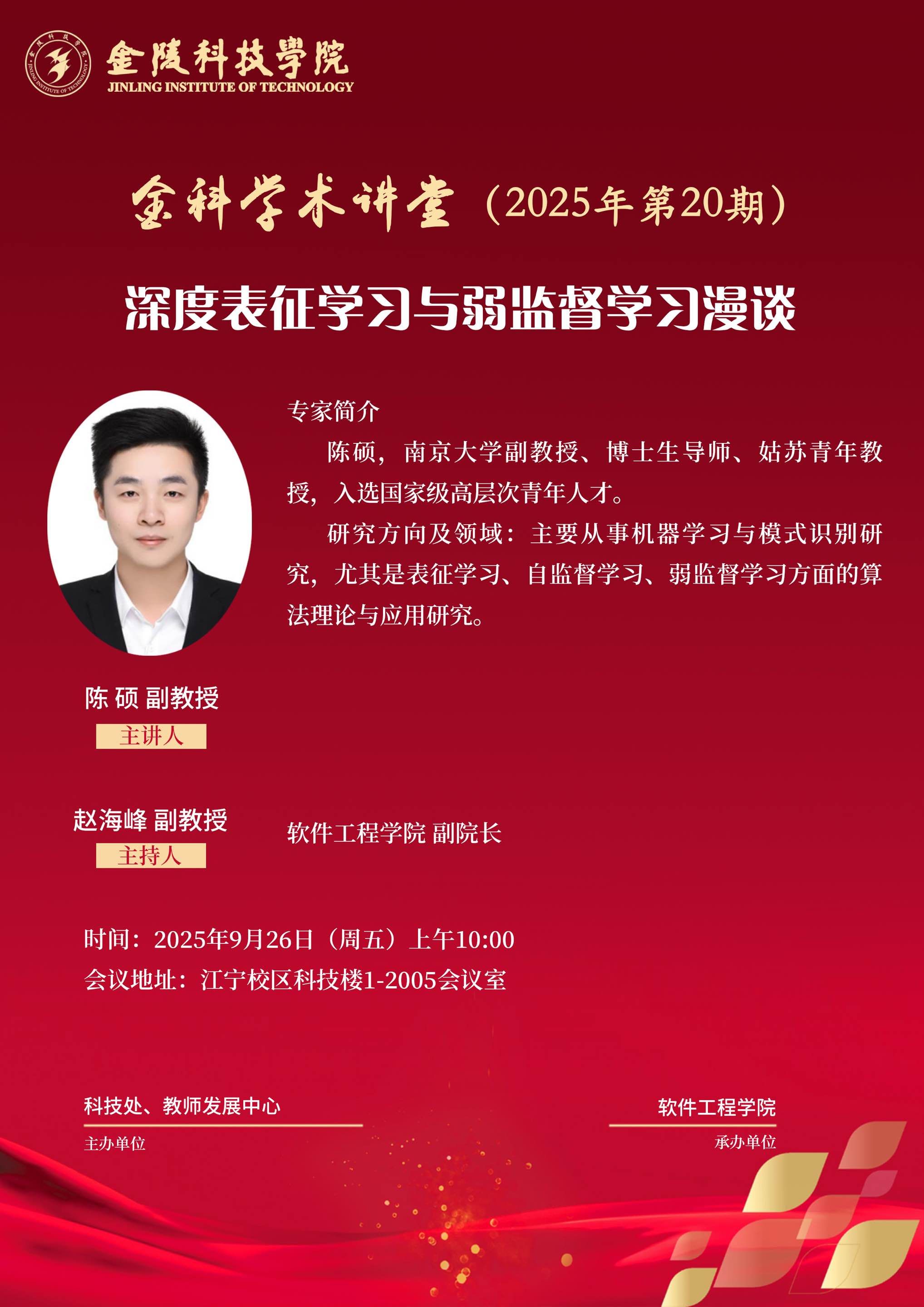 关于举办线下“金科学术讲堂——深度表征学习与弱监督学习漫谈”学术报告的通知